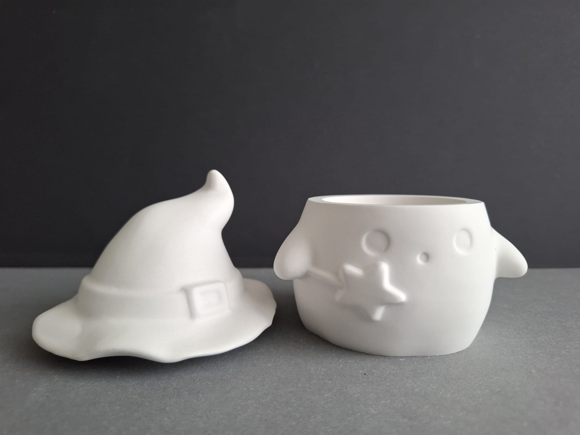 Fridolin ist ein stilvolles Halloween-Deko-Behältnis mit Hut-Deckel, gestaltet im Zauberer-Motiv. Es eignet sich ideal, um Süßigkeiten oder kleine Überraschungen thematisch passend aufzubewahren und verleiht jeder Halloween-Atmosphäre eine stimmige, magische Note. Seine durchdachte Form und robuste Verarbeitung garantieren eine langlebige Nutzung bei saisonalen Dekorationen.