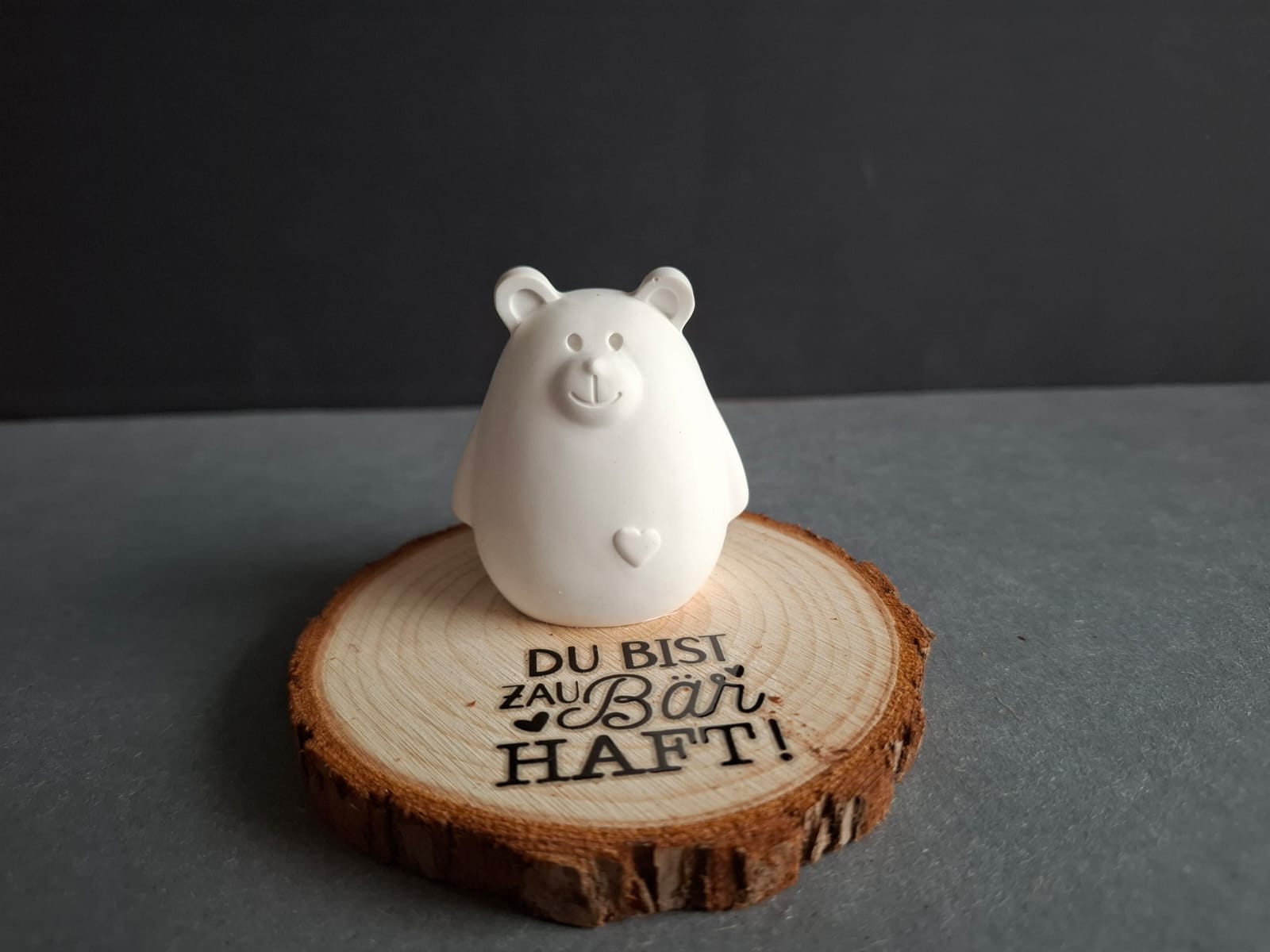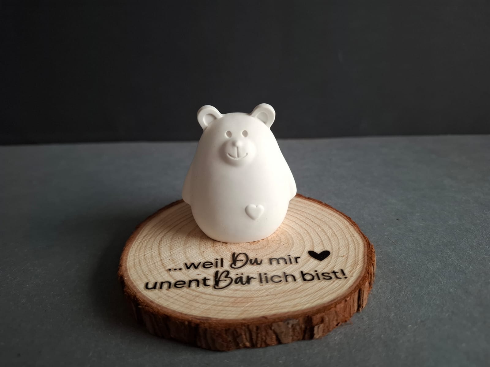 Der kleine Bär ist ein durchdachtes Geschenk mit persönlichem Charakter. Seine liebevollen Details und das niedliche Design machen ihn zum idealen Präsent für jeden Anlass. Besonders wertvoll wird das Stück durch die begleitende Holzscheibe mit einem herzlichen Spruch – eine Kombination, die emotionale Tiefe mit ästhetischer Eleganz verbindet. Diese Ergänzung verleiht dem Geschenk eine persönliche Note und macht es zu einem bleibenden Erinnerungsstück, das Gefühle ausdrückt und Nähe vermittelt.