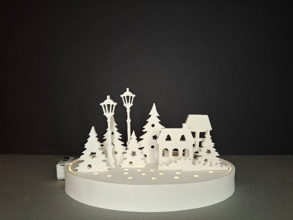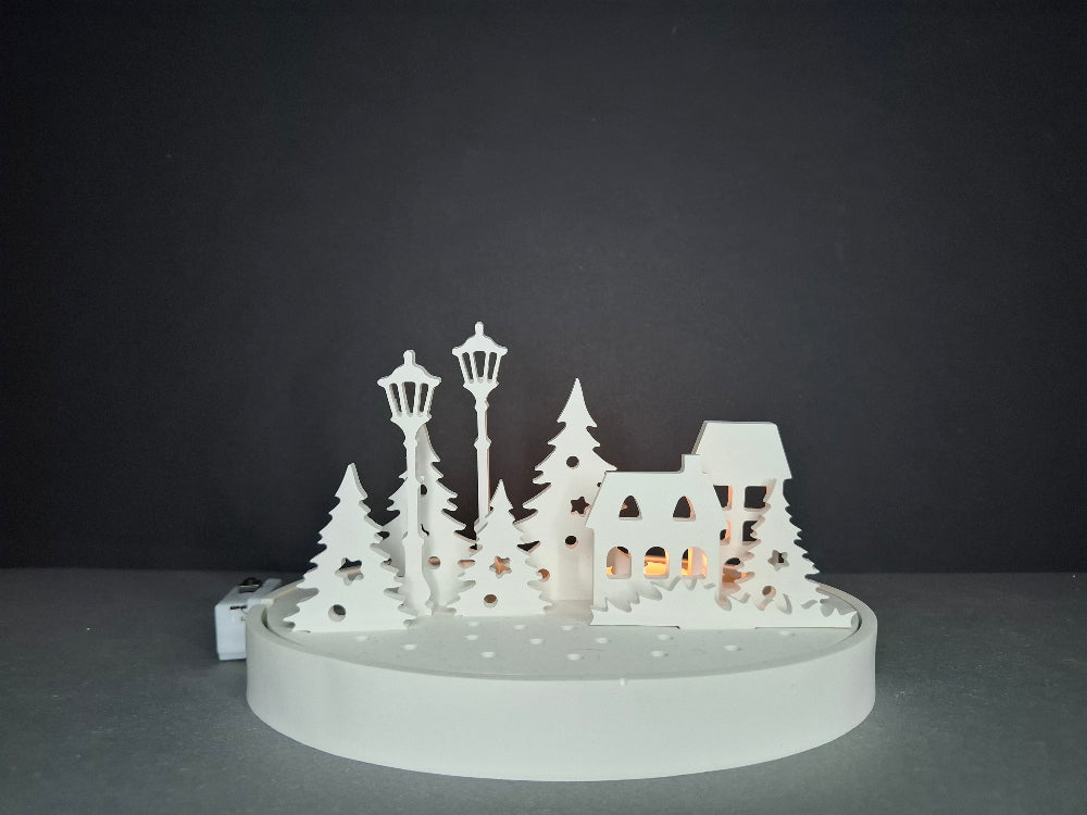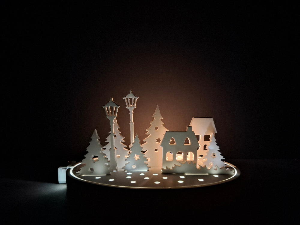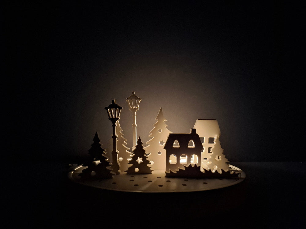 Winterdorf mit authentischer LED- und Kerzenbeleuchtung für stimmungsvolle Winterabende. Dieses dekorative Dorf schafft eine gemütliche Atmosphäre und eignet sich ideal als Blickfang für die Weihnachtszeit. Die kombinierte Beleuchtung erzeugt warmes, diffuses Licht und verleiht Ihrem Zuhause festlichen Glanz. Perfekt für Fensterbretter, Regale oder als Tischdekoration – ein zeitloses Accessoire für die kalte Jahreszeit.